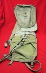 Original period manufacture. Tan canvas construction haversack (knapsack), complete with its infantry marked meat can pouch, Long 1917 date on the interior of the pack. Original Canvas Products Co. 1917 pack extender, with leather quick-release strap. The meat can pouch and pack are in a lighter shade of canvas, showing more use, while the pack extender, is showing more of storage wear only. All metal fittings are present.