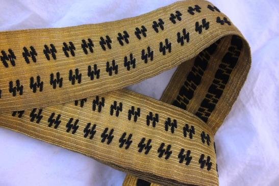 Gold brocade with standard and mirrored SS RUNES. 15 cm per strip