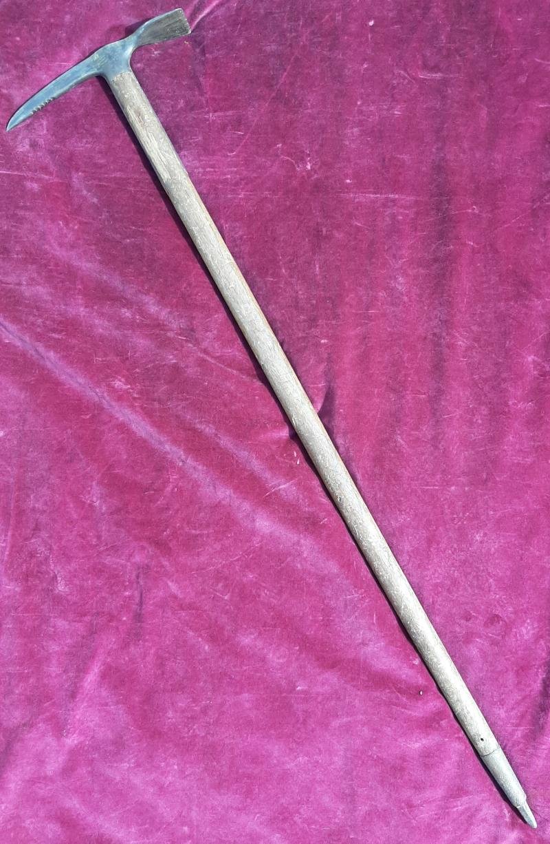 Österreich Bergstock/Eispickel mit Hersteller 'Werk Fulpmes' ! originaler Stock mit Eisenspitze als Abschluss - Schaufel/Spitzenlänge ca. 29cm; Gesamtlänge ca. 113 cm, Eisenteile flugrostig - Versand ins Ausland bitte um Anfrage wegen der Länge!
