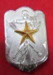 Original era manufacture. Large pattern badge with a pinback reverse and an applied brass star. Silver surface patina. 22x42mm.