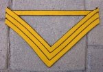 Original period manufacture. Wool felt seam to seam chevron with black silk piping. Battalion or Company QM Sergeant 1872-1882, Company, Troop or Battery QM Sgt 1901-1902.