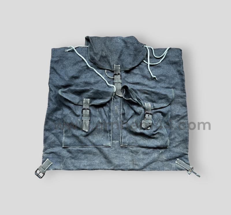 In really good condition a German WWII late-war Backpack, made of blue webbing construction. Very nice late-war example!