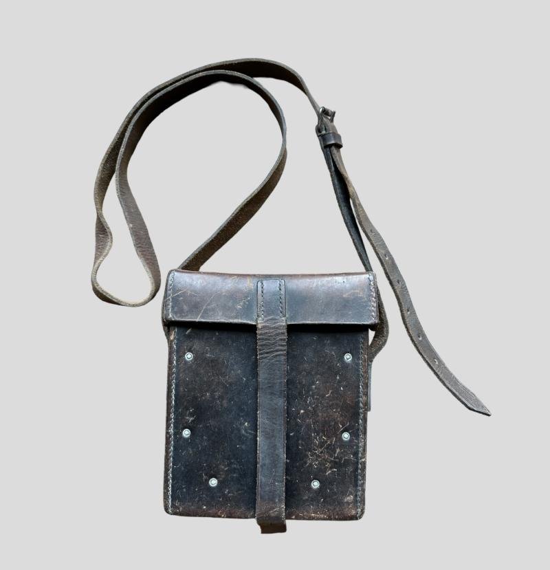 In very good condition a German WWII MG 13 Gunner's pouch made of dark-brown leather construction. The pouch comes with the original carrying sling, as well the WaA stamp is still visible marked.
