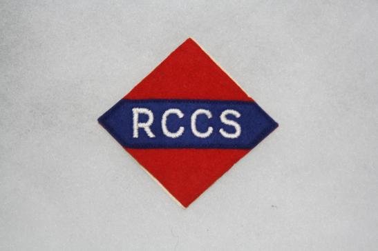 White RCCS embroidered on blue and red Royal Canadian Corps Signals Matched pairs available
