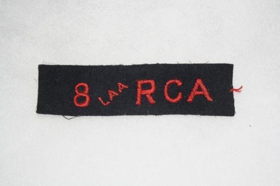 Unused, woven red on black, 8 LAA Royal Canadian Artillery