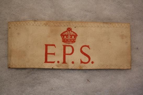 New Zealand WW2 Emergency Precautions Service Armband Red printed EPS and Kings Crown on white canvas