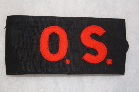 British Orderly Sergeant armband red OS on black armband buckle fastening and adjustment British stamped on buckle these are in new condition but are old WW2 style