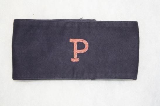 Belgium Navy Police Armband Rare, Red embroidered P on navy armband button fastening and adjustment...