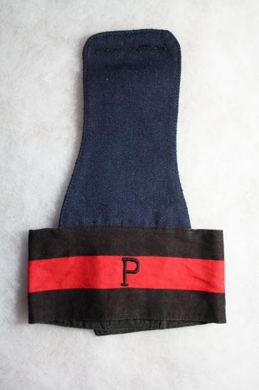 Belgium Airforce Police Brassard Small black P on on black red black brassard attach to airforce blue shoulder strap, Velcro adjustment