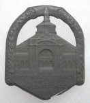 Original period manufacture. Stamped zinc badge with a pinback reverse. Measuring 32 x 40 mm.