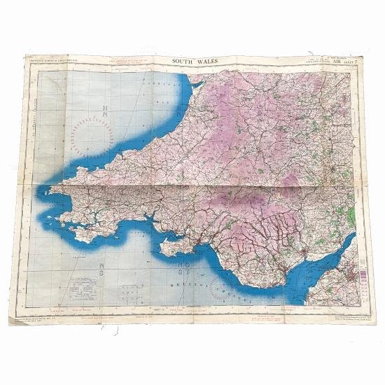 A WW2 RAF map of South Wales War Revision 2nd Edition denoting all the RAF bases in the area. A Geographical Section, General Staff, No. 3957 (Air). Published by the War Office 1943. Note this is a heavy duty type being printed on paper & cotton fabric.