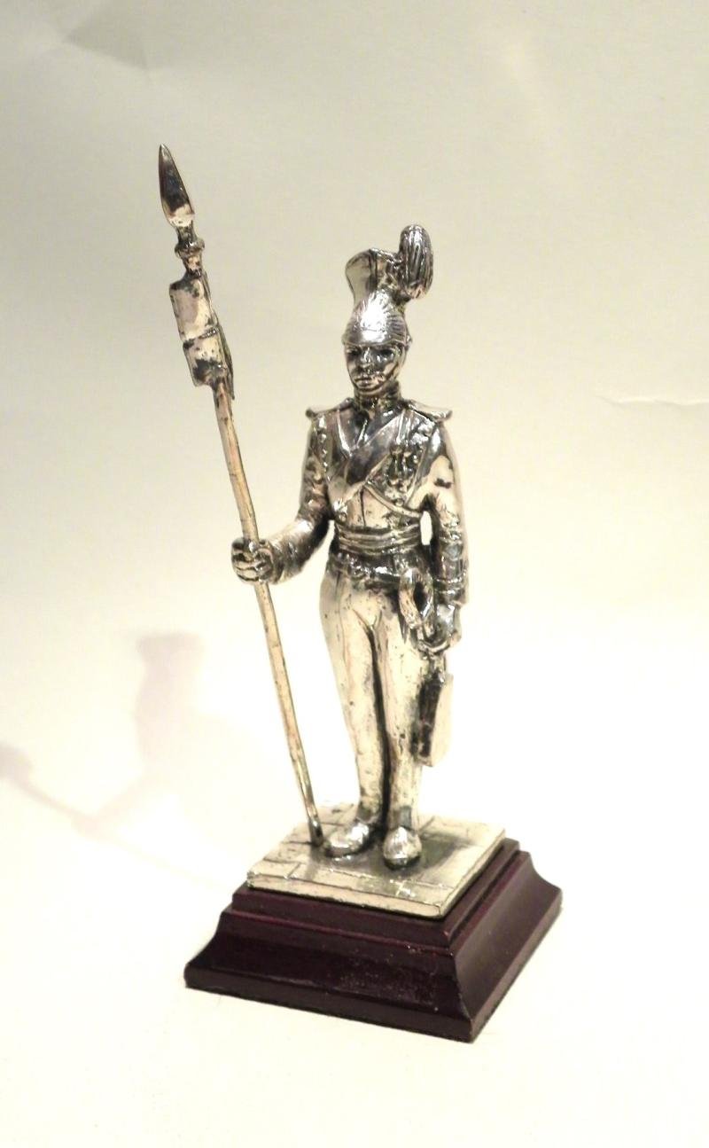 A silver plated figure of a Victorian Lancer from the Hampshire art foundry, he comes in very good but displayed condition standing 5.25 inches high.