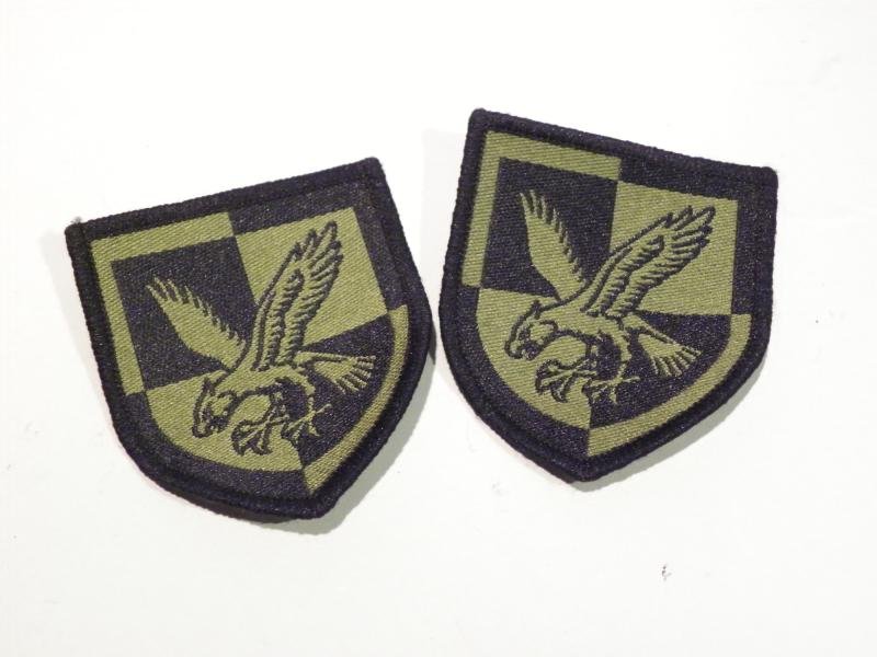 A genuine pair of cloth DPM Subdued green sleeve badges worn by the 16 Air Assault Brigade from 1999 until 2015. Both are in very good used condition. 2.25 x 2.5 inches.