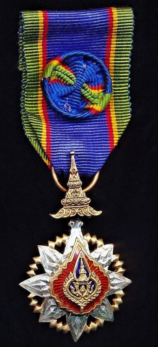 Thailand: Order of the Crown. 4th class 'Officer' breast badge. Silver gilt & enamel