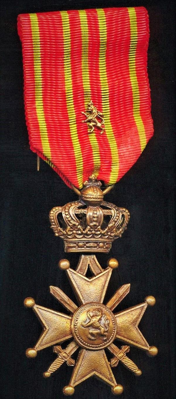 The decoration with King Albert I reverse The 1st type 'Rampant' Bronze Lion emblem denotes: - 1 x Bronze Lion: The award of 1 x Citation in Orders of the Day at 'Regiment' level The medal retaining its original silk riband, that is fitted with an 'Epingle' two-pronged mounting pin in the Belgian style Condition: GVF