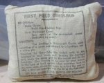 Original period manufacture. WWII British Field Dressing, cloth covered, assorted WWII era dates and makers names. Unused, rough measurements 4 x 3.25 inches, stock photo, minor details will vary, dates and makers names.