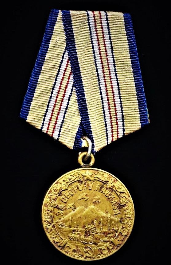 Awarded to all Soviet military and civilians who participated in the defence of the Caucasus region between July 1942 and 9 October 1943 It is estimated that 870,000 x medals were awarded to qualifying personnel Medal fitted with five sided riband mounting plate that retains the original hinged pin and clasp fittings on the reverse Condition: About VF