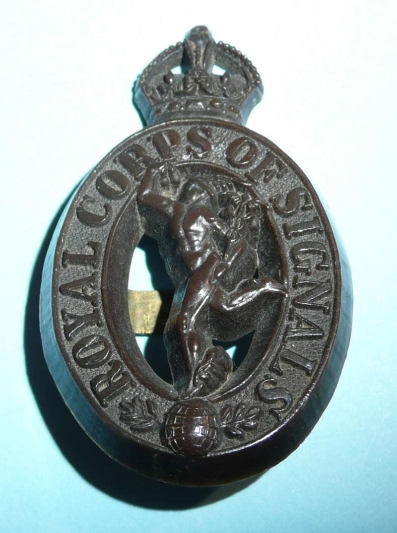 1st Pattern Royal Corps Of Signals cap badge , WW2 issue in chocolate brown plastic with two brass prongs to the rear. Maker marked Stanley & Sons. In very good condition, no warp and only light crazing to reverse. Comm GeMy