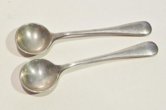 This pair of spoons are clearly hallmarked for Birmingham 1919 and have a makers mark of E.S.R, used as salt spoons in open salt cellars they come in very good condition with some wear to the bowls, they measure 2.75 inches long.