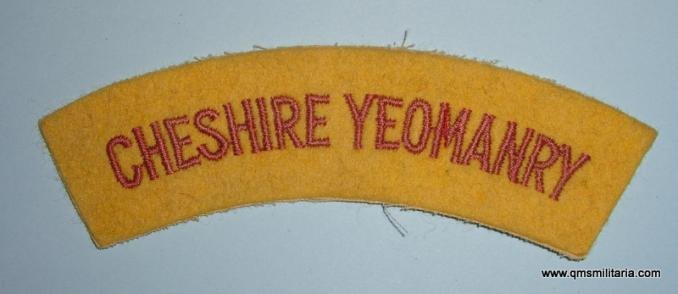 Cheshire Yeomanry Red on Yellow Woven Cloth Shoulder Title