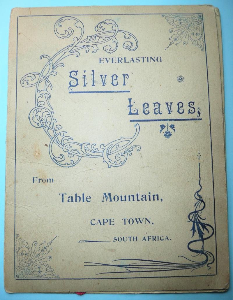 Everlasting Silver Leaves From Table Mountain Cape Town South Africa. The silvered leaves are in good condition, with a stamped picture of army lines and blockhouses. In good overall condition and scarce. One leave looks like it has lost an edge otherwise all in good condition. 'Everlasting' real leaves, certainly still good after 120 years! Rare in this condition.Coll