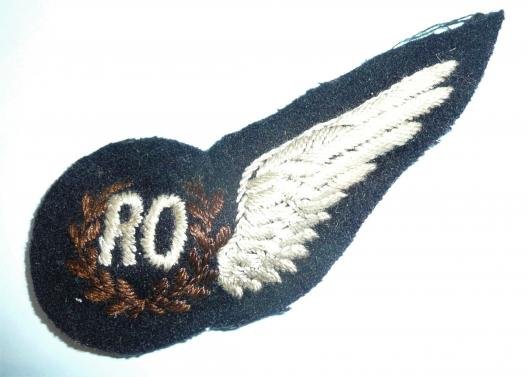 A fine padded half wing with “RO” to centre of wreath. Good example, removed from uniform. Actually worn by airborne Radar Operators. G79.4