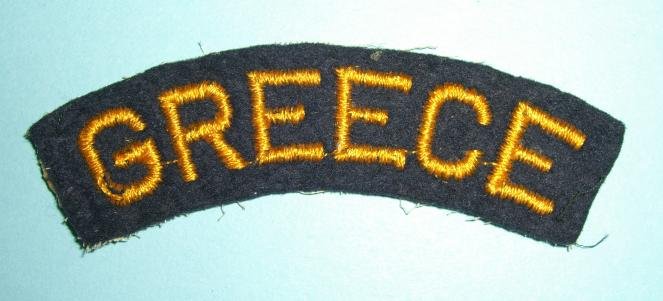 Rare WW2 GREECE Greek Nationality Woven Gold Yellow on Dark Blue Nationality Shoulder Title