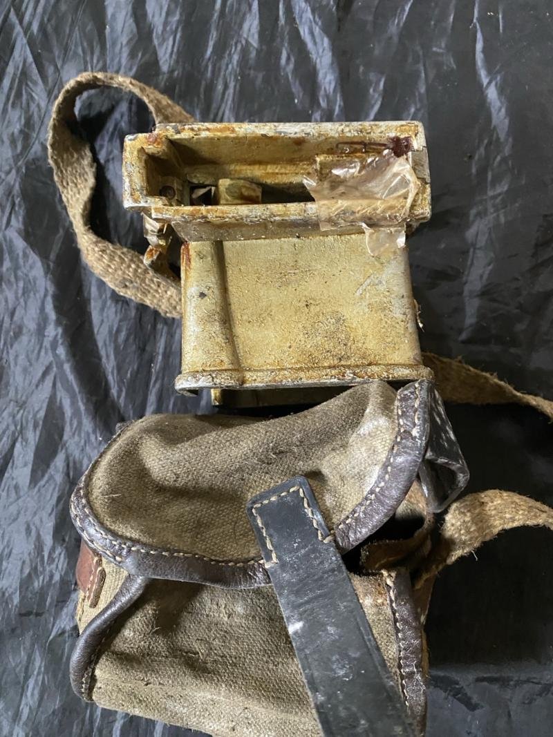This is a nice WW2 Czech ZB26-30 magazine loader and its canvas/leather pouch which has its carry strap.