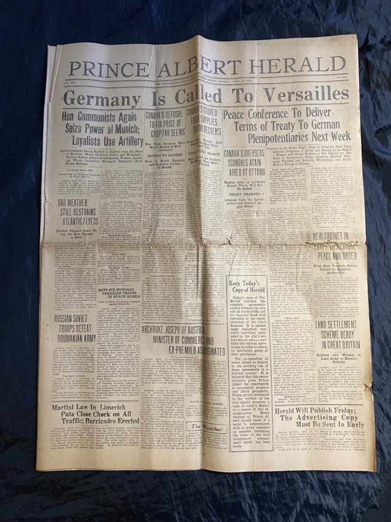 1919 DATED PRINCE ALBERT HERALD NEWSPAPER