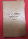 Original era publication. British WWI Active Service Testament with Lord Roberts address to the troops. Pocket size with a leather cover.