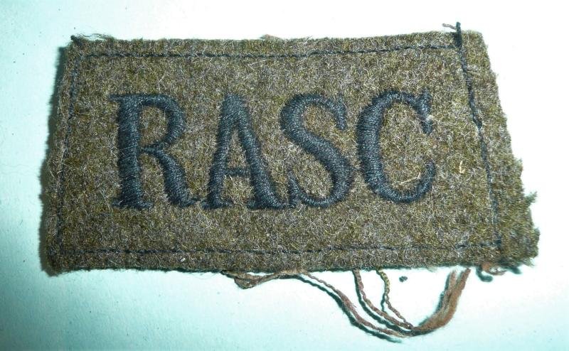 WW2 RASC Royal Army Service Corps Embroidered Black on Khaki Cloth Shoulder Slip on Slide Title