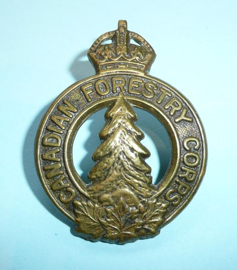 WW2 Canadian Forestry Corps Brass Gilding Metal Cap Badge