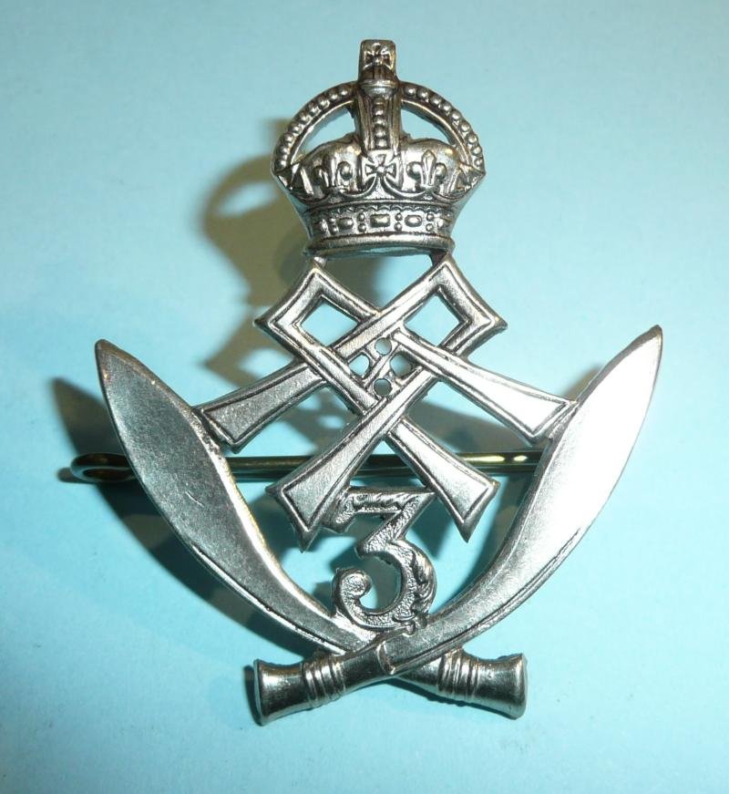 3rd Queen Alexandra's Own Gurkha Rifles White Metal Kilmarnock Cap Badge, King's Crown