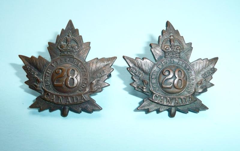 WW1 Canada 28th Battalion CEF Canadian Expeditionary Force Matched Pair of Collar Badges