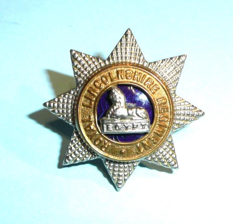 Royal Lincolnshire Regiment Officer's Small Silver Gilt and Enamel Field Service / Side Cap Badge