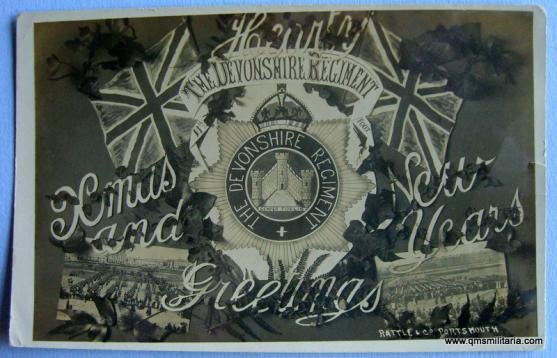 Christmas Xmas New Year 1917 Black & White WW1 Postcard celebrating the Devonshire Regiment