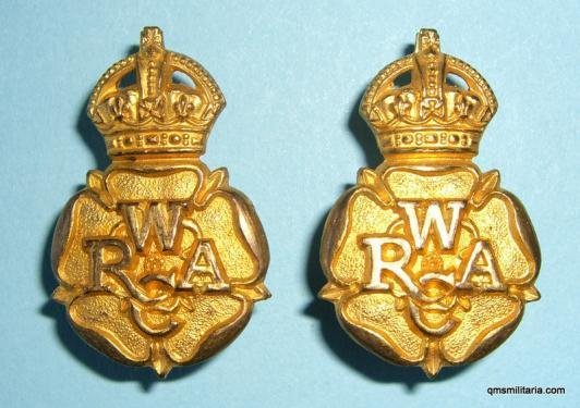 WRAC Women's Royal Army Corps Officer's Matched Pair of Gilt Collar Badges