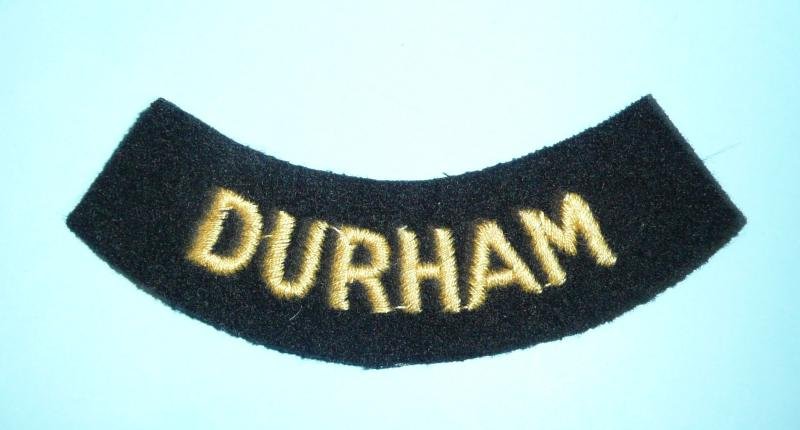 WW2 Civil Defence Corps County Durham Woven Yellow on Black Felt Cloth Shoulder Title