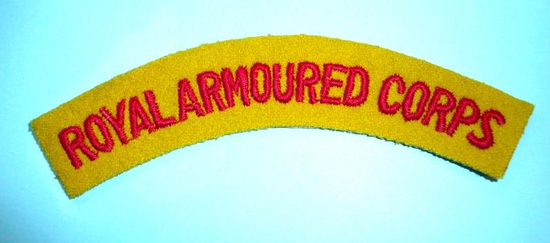 Royal Armoured Corps Embroidered Red on Yellow Felt Cloth Shoulder Title