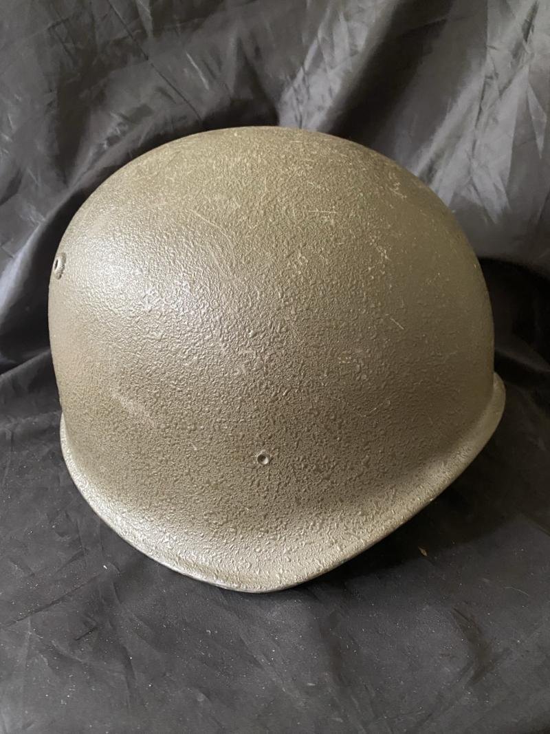 This is a very nice Swiss M1971-79 helmet with a metal liner band which is a size 59-61, the liner and chin strap are in great condition and this helmet has a rough texture paint finish, a nice one to add to the collection of helmets.