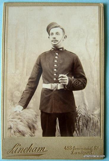 A good condition cabinet of Royal Artillery solider. Named and dated on reverse in a contemporary ink hand: 'J. Howard, Royal Artillery, Nov 18th, 1899.' Possibly taken before his departure to the South African war. Worthy of further research. Coll.