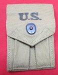 Original era manufacture. Very clean condition, light OD canvas pouch with a stenciled US on the flap. Makers stamp on the reverse appears to be R.M.Co. with a 1942 date. In near new condition.