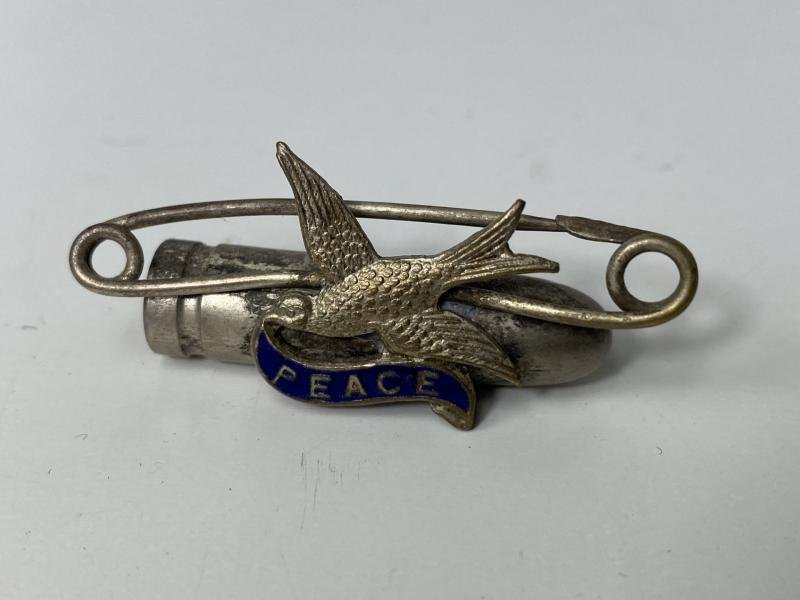This is a nice Trench art peace brooch with a bullet added to it.