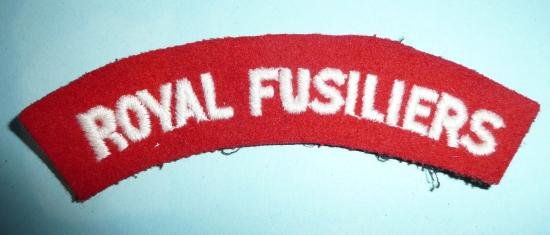 Royal Fusiliers Embroidered White on Red Felt Cloth Shoulder Title