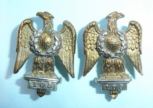 A facing pair of bi-metal collar badges each with strong single central loop to the reverse. A close rather than an exact match. In very good condition. G64.2