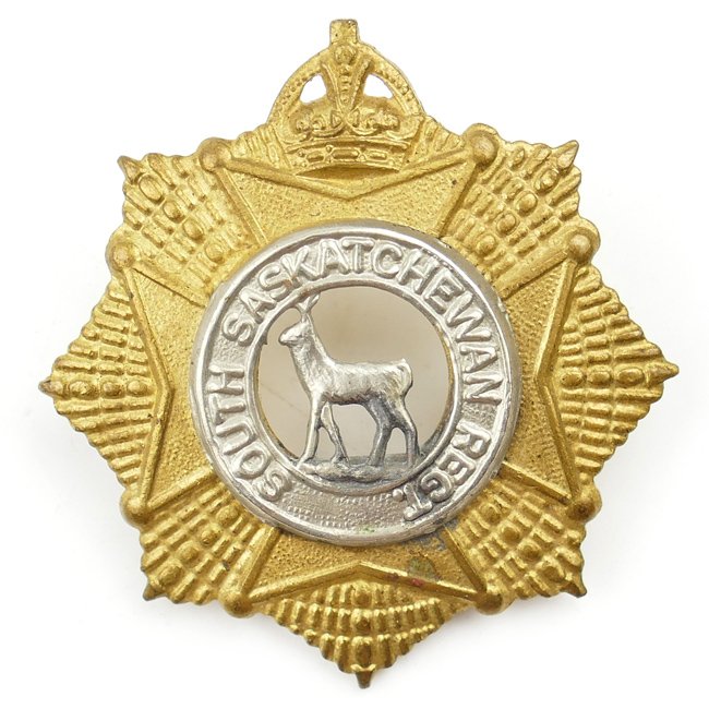 Canadian South Saskatchewan Regiment Cap Badge. Wartime 2-piece brass construction cap badge, complete with both lugs. Nice original example in good used condition.