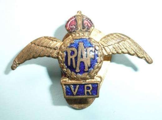 RAF / VR (Royal Air Force Volunteer Reserve) Gilt and Enamel OCA Buttonhole Badge, King's Crown