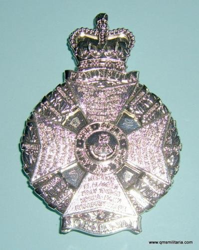 A fine two part construction silver chrome cross belt plate to The Rifles. With four screw posts to the reverse complete with original securing nuts. Battle Honours to Iraq 2003. In unissued condition. Circa 10cm tall and 7cm wide.A126.2