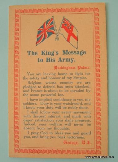 Scarce WW1 Boots the Chemist Patriotic Postcard - The King's Message to his Army