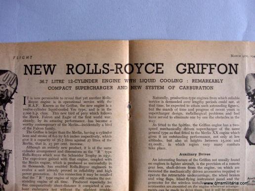 Article extracted from Flight Magazine March 1944 - New 36.7 litre 12 cyclinder Rolls Royce Griffon Engine as fitted in the Spitfire